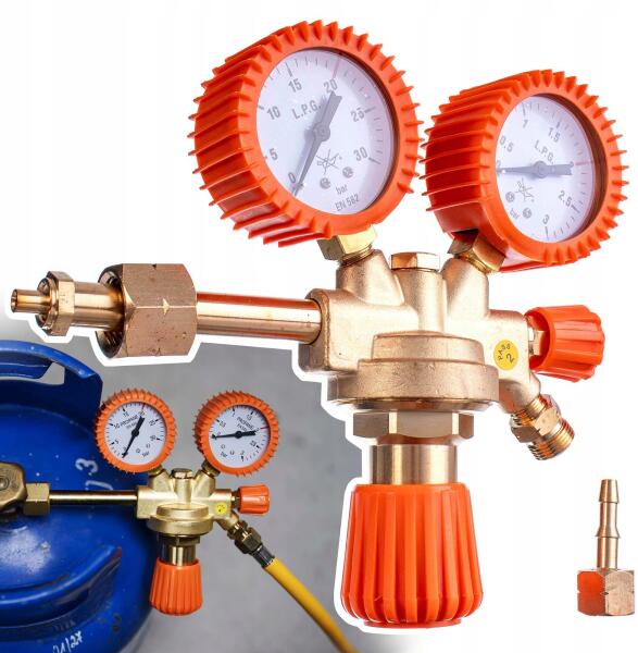 TC Technic Palack reduktor Propan Bután PB-gázhoz 2x Nyomásmérő Hosszú szívócső (2083)ALLEGRO